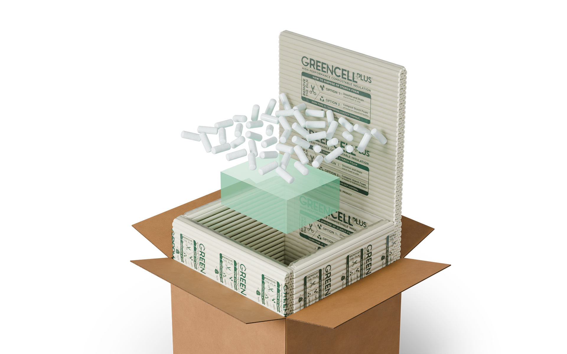 · Compostable Insulation: GreenCell Foam™ can be home or industrially composted or safely dissolved in water and rinsed down the kitchen sink, taking the disposal burdenoff patients.